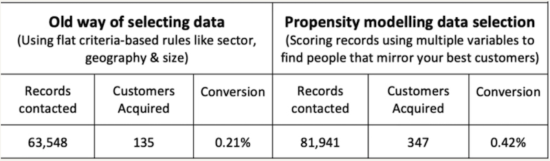 We trialled propensity modelling side by side with their traditional approach so that a direct comparison could be evidenced.
